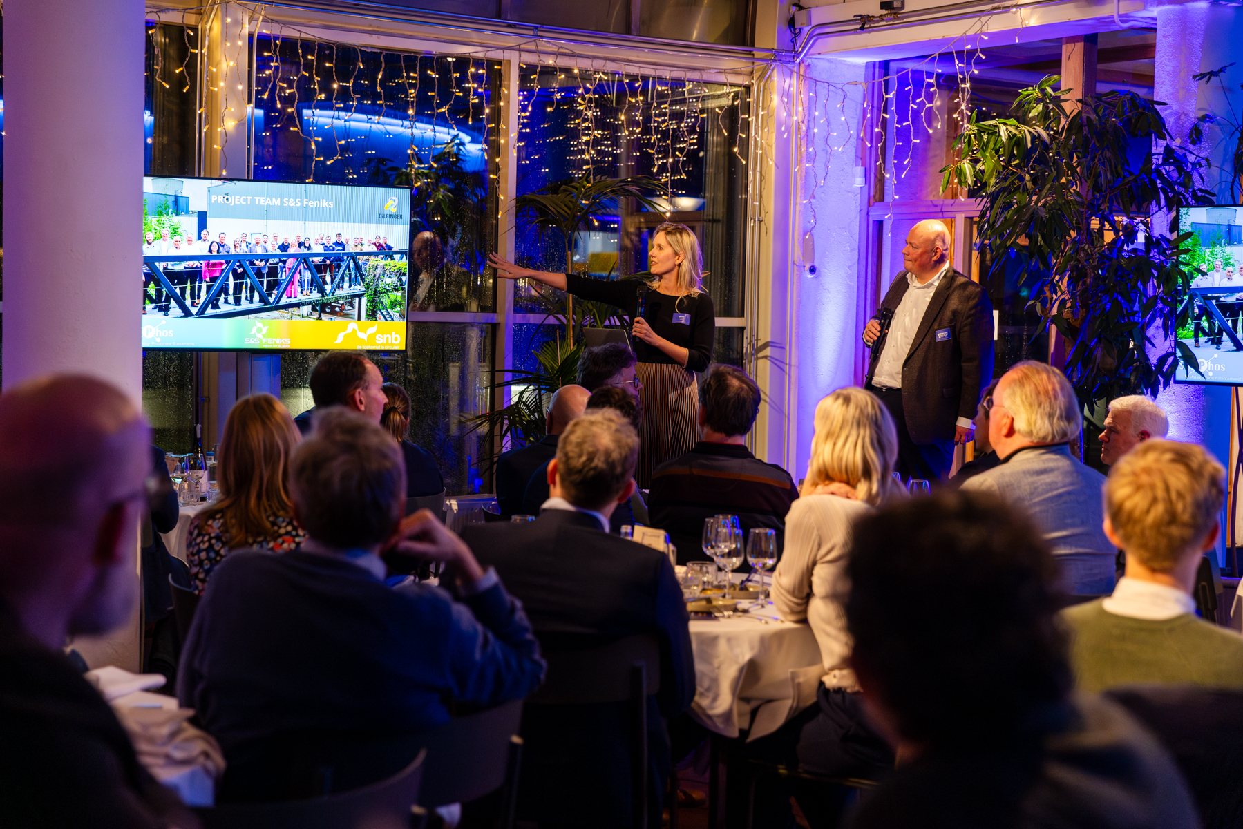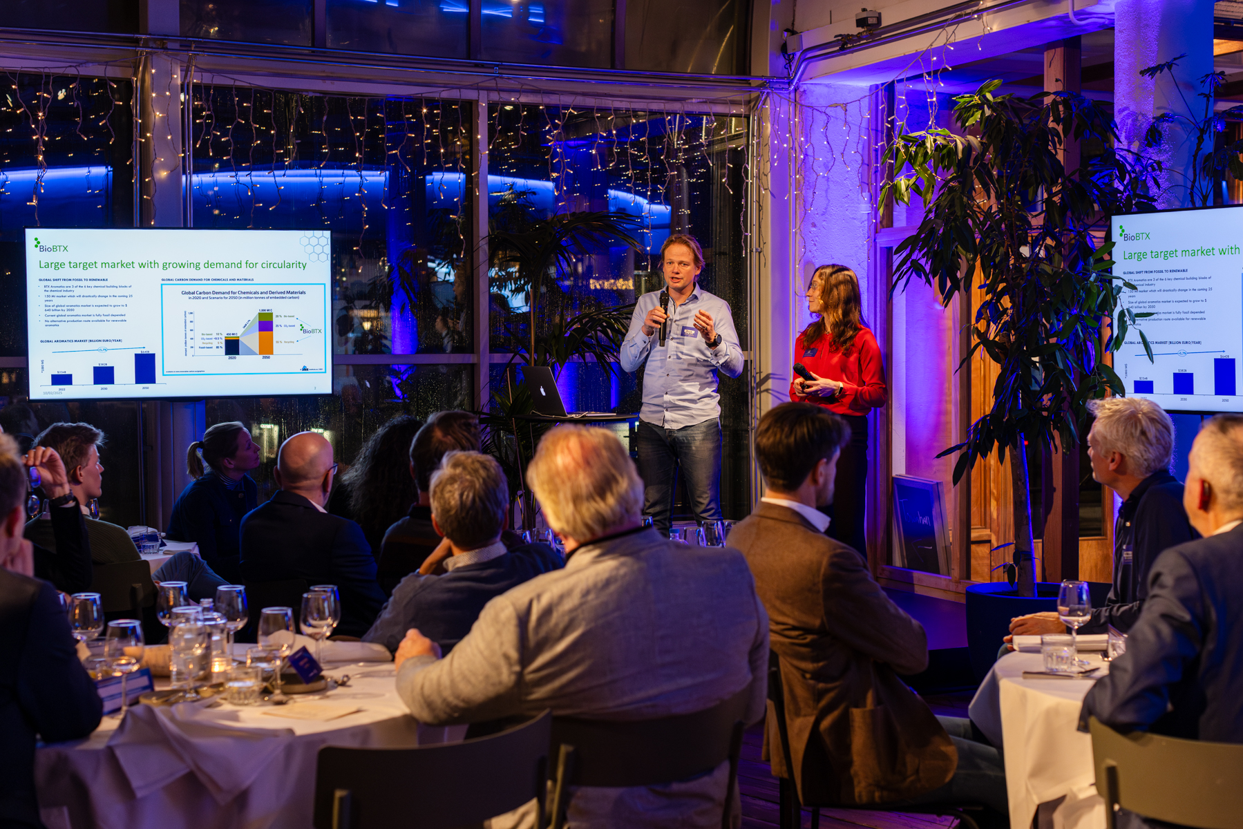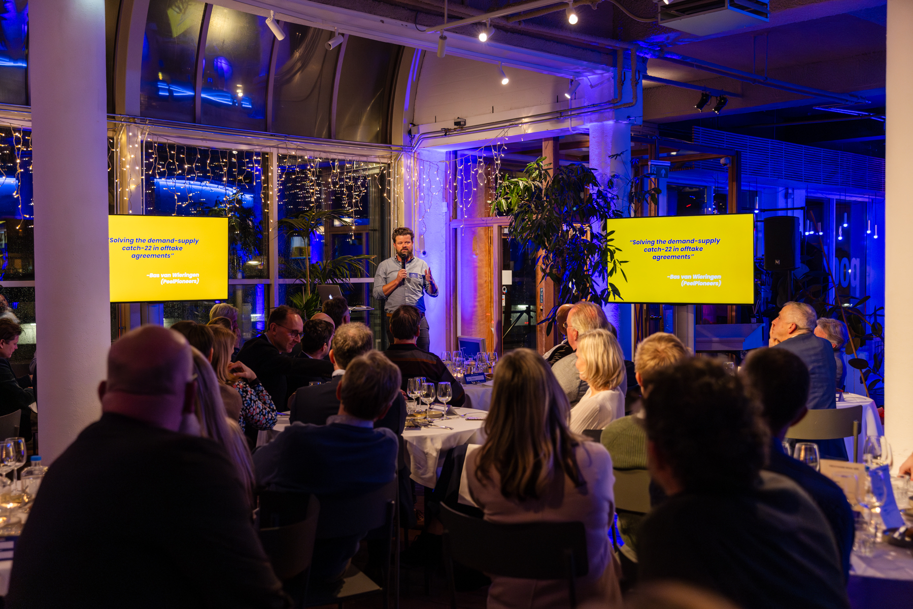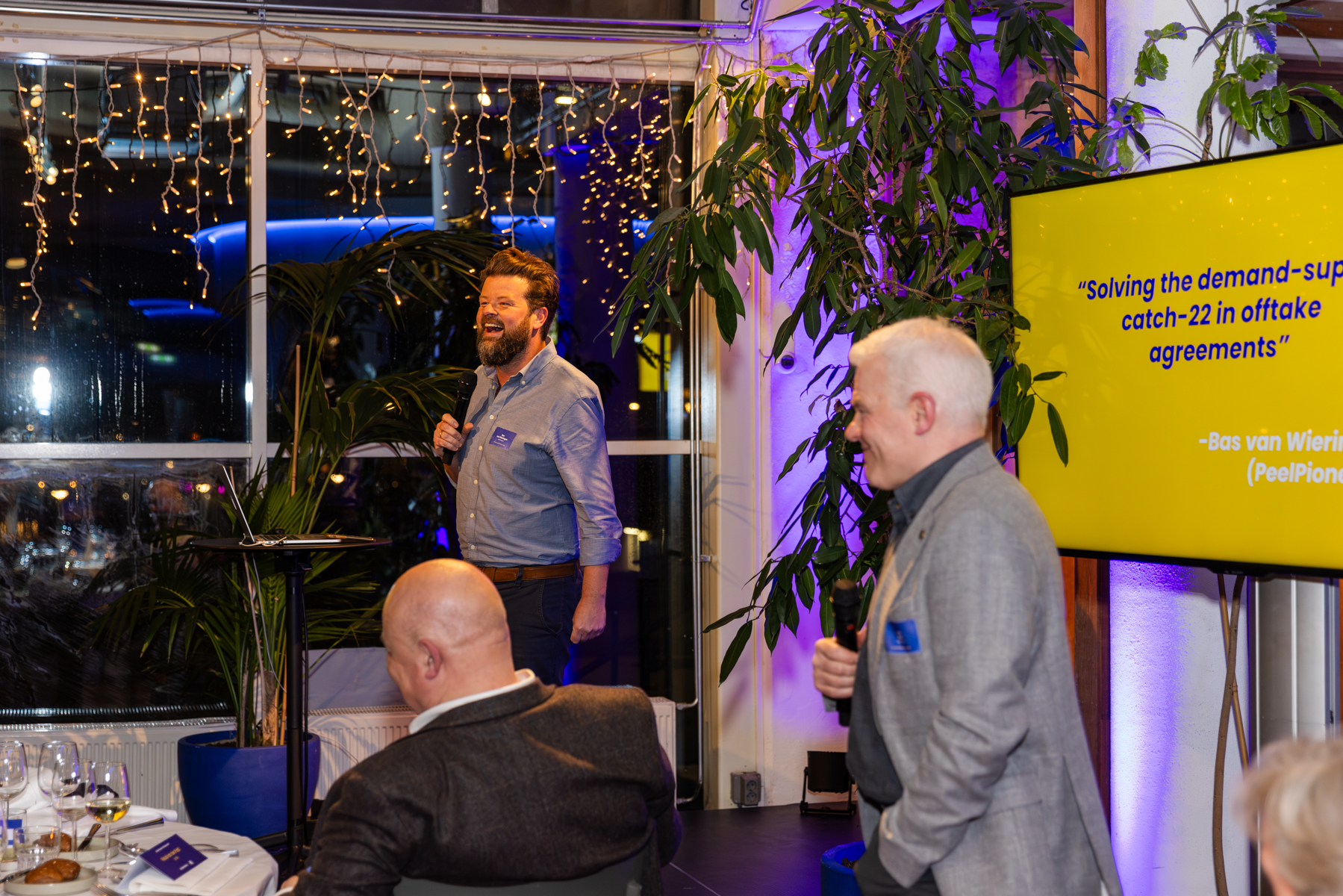 Guests were provided with a four-course dinner, inspiring keynotes from Marissa de Boer and Silvester Bombeeck (SusPhos-SNB JV S&S Fenix), Bas van Wieringen (PeelPioneers) and Petra Beris & Hans Dijkstra (BioBTX), and plenty of space for engaging conversations with fellow pioneers. Moderator Joop Groen, Community Lead at GCNE and an entrepreneur himself, facilitated discussions between speakers and the audience.
