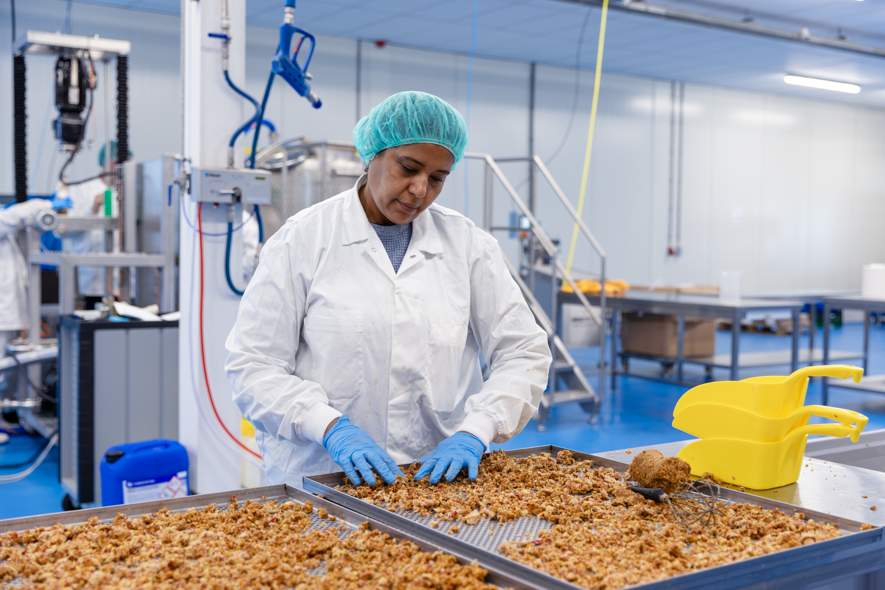 In 2016 they started out by processing locally rejected export bananas into puree, then expanded to working with cashew farmers in Burkina Faso. In the Netherlands, Yespers collaborates with Dutch fruit growers and suppliers such as FruitMasters. With the help from the Rabo Foundation, they were able to open their production facility in The Hague: the world’s first Total Value Factory—a factory that maximizes both material and human value.